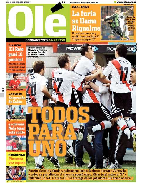 En realidad, los motivos superan largamente los 55. Pero tampoco es cuestión de andar reflotando tapas de Olé muy viejas. No nos hace falta semejante pérdida de tiempo. Con concentrarnos sólo en este 2012, nos alcanza y nos sobra (?).